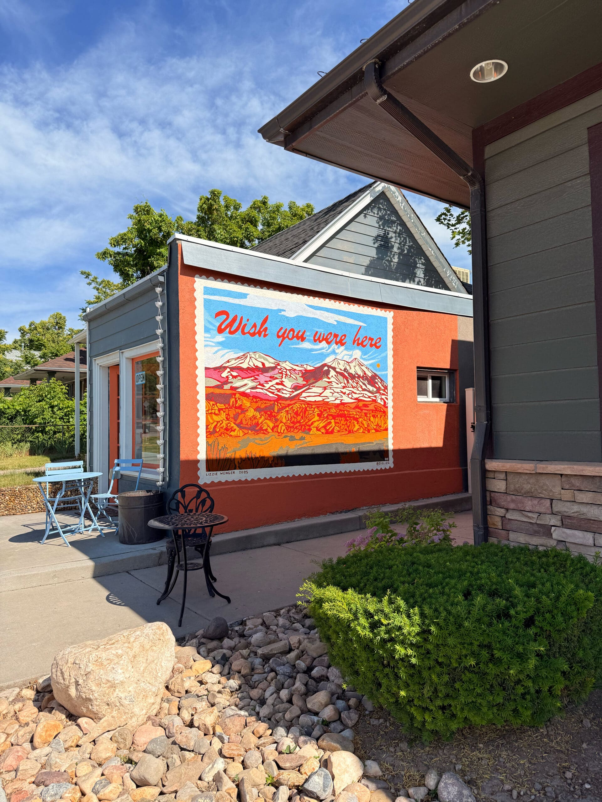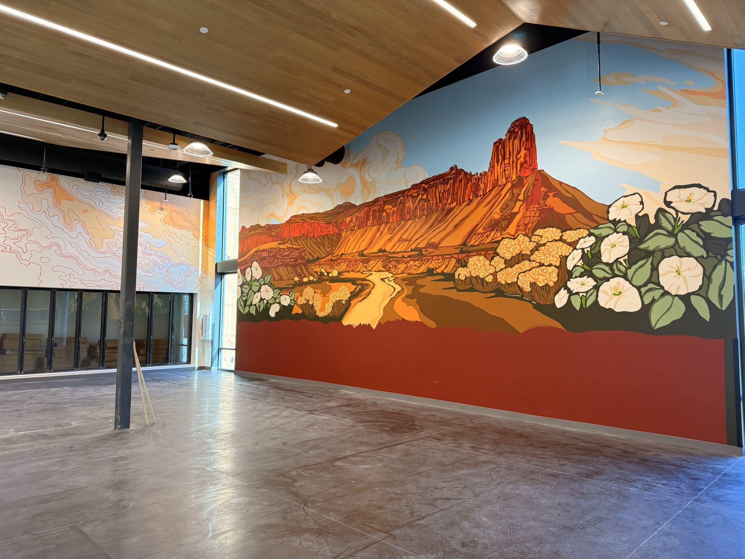 Born in Salt Lake City, Utah, Lizzie Wenger (she/her) (b. 2001) has long been captivated by the colorful, fragile, and unique landscapes of the southwest. After her father’s passing when she was 12, Lizzie began to explore grieving and healing with the outdoors serving as a guide. Climbing, canyoneering, biking, and hiking were some of the activities that empowered her throughout this period, and continue to do so. Now an avid mountaineer, rock climber, and general action sport enthusiast, her free time is spent exploring the mountains and canyons of the West. Lizzie’s perspective on western landscapes is playful, colorful, and inviting. Her work is intended to inspire connectivity between people and places, to share the healing forces of nature, and communicate her own relationship with the outdoors. Lizzie’s “psychedelic cubist” style has been developing for many years as she navigates different ways to see the world around her